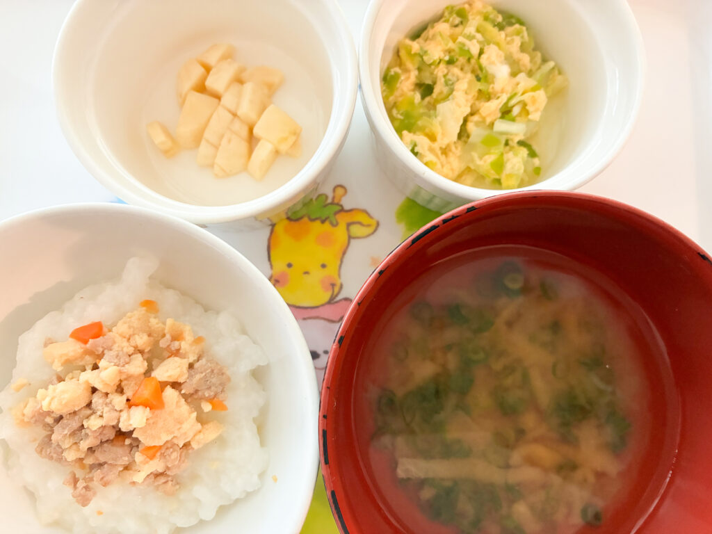 1月21日水曜日 高野豆腐のそぼろ丼 高野豆腐・ひき肉・にんじんのそぼろ丼 切り干し大根の味噌汁 切り干し大根・油揚げ・ねぎのお味噌汁出汁は煮干しでとっています キャベツと卵のマヨ炒め キャベツとハムを溶き卵と炒めて、マヨネーズで味付けしています フルーツ バナナ 3時のおやつは【カナッペ】 【離乳食】 高野豆腐のそぼろ丼・切り干し大根の味噌汁・キャベツの卵とじ・バナナ 一覧 前の記事 次の記事