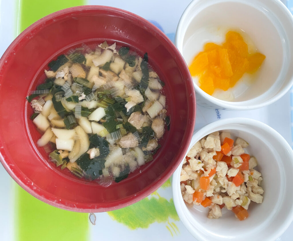 12月13日土曜日 きつねうどん 鶏肉・ほうれん草・油揚げのおうどん出汁はかつお節でとっています 炒り豆腐 木綿豆腐ににんじん・しいたけ・長ネギを調味料と炒めた副菜 フルーツ オレンジ 【離乳食】 一覧 前の記事 次の記事