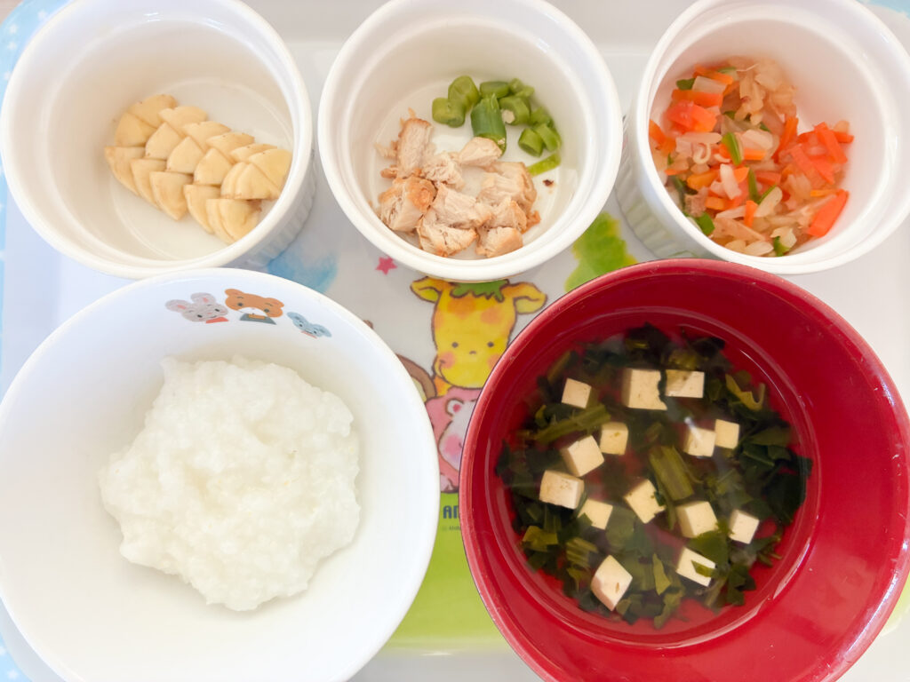 12月18日木曜日 ほうれん草と豆腐のすまし汁 ほうれん草とシイタケと木綿豆腐のすまし汁出汁はかつお節でとっています めかじきの照り焼き メカジキを和風のたれで味付けしています もやしのカレー炒め にんじん・ピーマン・もやし・ハムをカレー風味の味付けで炒めた副菜 フルーツ バナナ 3時のおやつは【スイートブール】 【離乳食】 5倍粥・ほうれん草と豆腐のすまし汁・かじきの照り焼き・もやしのおかか和え・バナナ 一覧 前の記事 次の記事