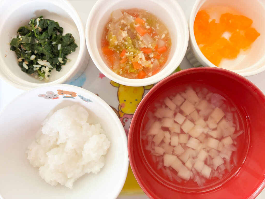 3月27日金曜日 じゃがいもと玉ねぎのお味噌汁 出汁は煮干しでとっています 厚揚げのうま煮 お豆腐の生揚げと豚肉・白菜・にんじんの煮物 ほうれん草としめじのお浸し ほうれん草・しめじ・しらす干し・かつお節のお浸し フルーツ オレンジ 3時のおやつは【ココアショートブレッド】 【離乳食】 七倍粥じゃがいもと玉ねぎのスープひき肉のうま煮ほうれん草のおかか和えオレンジ 一覧 前の記事