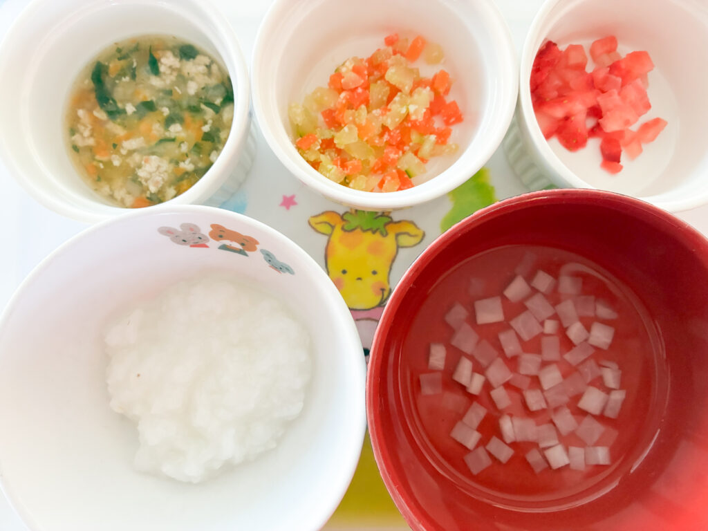3月4日水曜日 だいこんの味噌汁 だいこん・えのきたけのお味噌汁お出汁は煮干しでとっています 豆腐のチキンナゲット 鶏ひき肉・玉ねぎ・小松菜・にんじん・お豆腐を混ぜて揚げたチキンナゲット ひじきサラダ ひじき・きゅうり・にんじん・ツナを手作りドレッシングで和えた フルーツ いちご 3時のおやつは【きなこトースト】 【離乳食】 7倍粥・大根のスープ・ひき肉のやさいあんかけ・きゅうりとにんじんチーズ風味・いちご 一覧 前の記事
